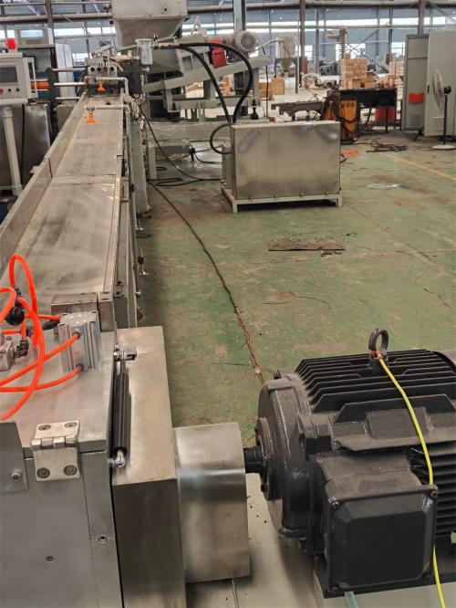 塑料造粒代加工_塑料抽粒代加工_佳德JDL-65D雙螺桿水拉條機(jī)組一、系統(tǒng)機(jī)組技術(shù)參數(shù)Ⅰ、機(jī)器顏色:主機(jī)為公司標(biāo)色;電柜為電腦色Ⅱ、造粒工藝:雙螺桿計(jì)量式喂料——-JDL-65D雙螺桿擠出機(jī)---—液壓板式換網(wǎng)器——拉條機(jī)頭----4米不銹鋼水槽-----吹干機(jī)----龍門切粒機(jī)-----振動(dòng)篩-----成品料倉(cāng)------25公斤稱重系統(tǒng)------主機(jī)采用:PLC控制Ⅲ、作業(yè)物料:TPE彈性體 產(chǎn) 量:200-350公斤/小時(shí)(作業(yè)條件不同,產(chǎn)量稍有不同)客戶為何購(gòu)買我們?cè)O(shè)備,我們價(jià)位在行業(yè)屬于中低價(jià)格,我們?cè)O(shè)備能給客戶帶來(lái)哪里利益,我們?cè)O(shè)備能給用戶帶來(lái)以下利益:塑料造粒代加工_塑料抽粒代加工1.特點(diǎn):這套設(shè)備主機(jī)是環(huán)保型;主機(jī)設(shè)備不需要接外循環(huán)水系統(tǒng);自帶循環(huán)冷卻統(tǒng)是我公司專利產(chǎn)品,2.雙螺桿齒輪箱冷卻采用:采用環(huán)保冷卻系統(tǒng)(環(huán)保型:發(fā)明專利號(hào):CN201911312134.6)不需要接外循環(huán)水冷卻,不用徘外水;采用閉環(huán)循環(huán)系統(tǒng),不用擔(dān)心長(zhǎng)時(shí)間使用水冷卻會(huì)產(chǎn)生水垢把冷卻器堵住,導(dǎo)致齒輪箱損壞3.雙螺桿主機(jī)水箱冷卻系統(tǒng)采用:采用環(huán)保冷卻系統(tǒng)(環(huán)保型:發(fā)明專利號(hào):CN201911312134.6)